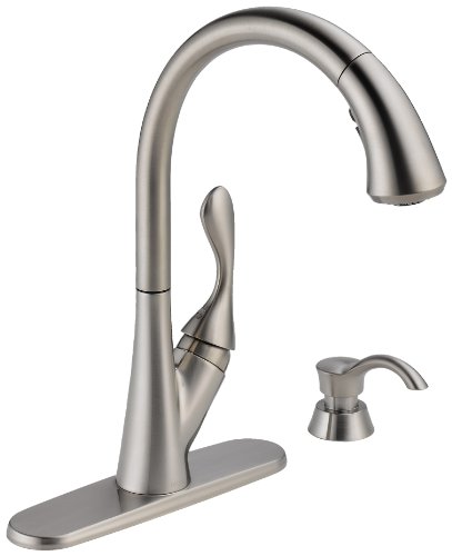 Delta Ashton 19922-SSSD-DST Single Handle Pull-Down Kitchen Faucet with Soap Dispenser, Stainless Specs